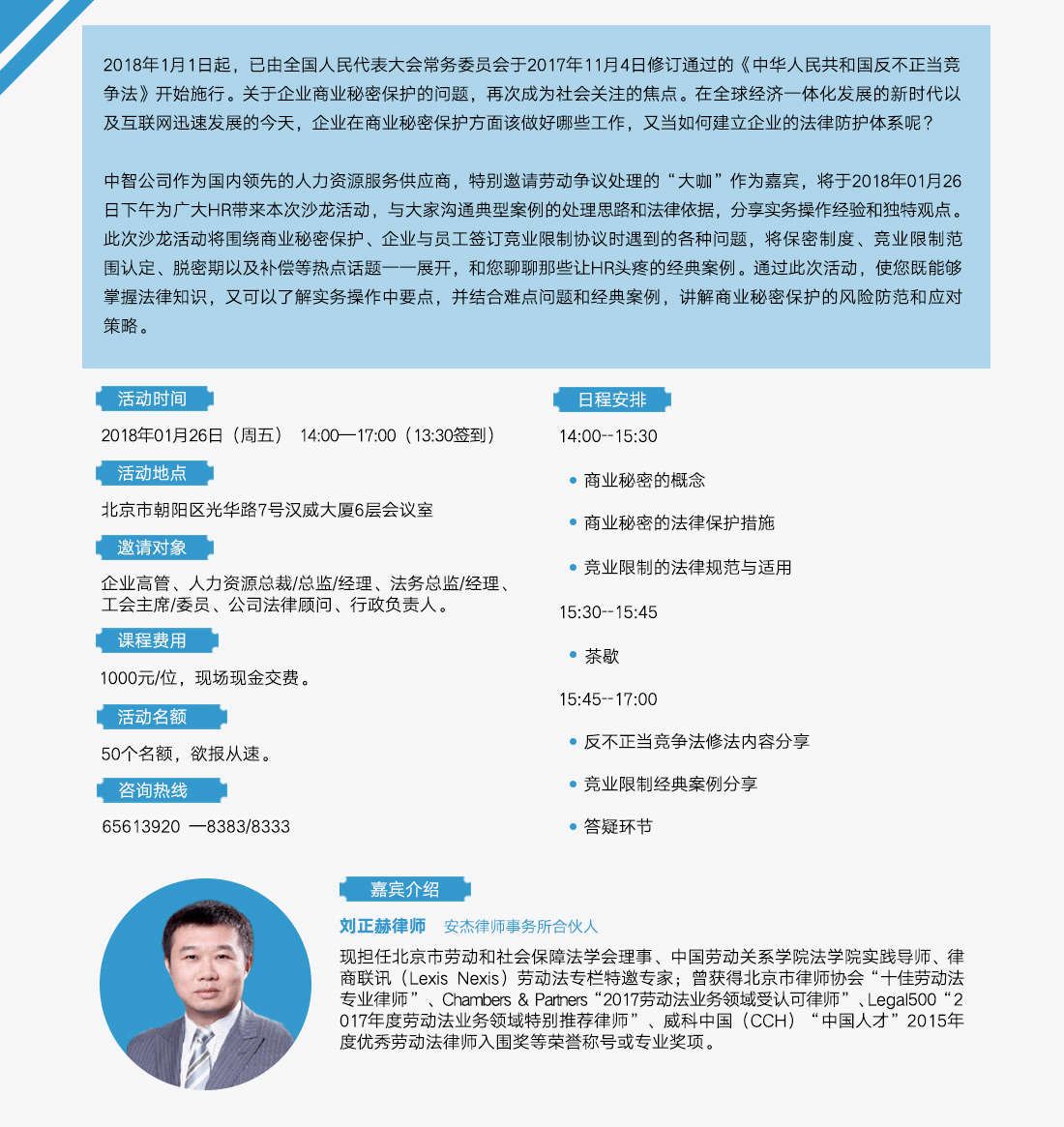 智汇赢--中智法律沙龙1月26日《企业的商业秘密保护》