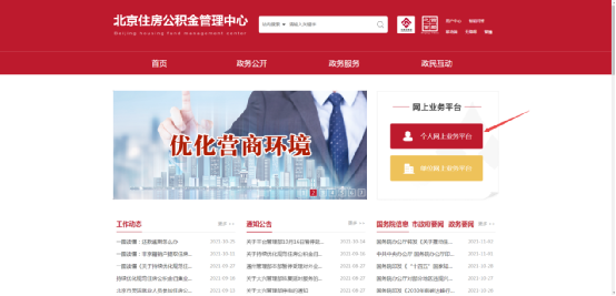 1、登录北京公积金官方网站http://gjj.beijing.gov.cn/,点击首页右侧【个人网上业务平台】。