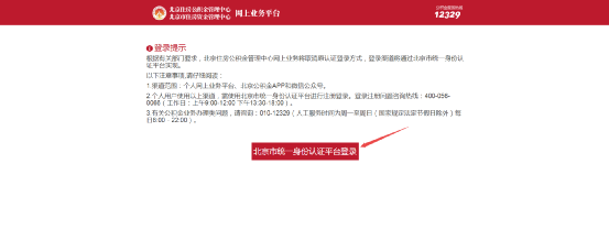 3、北京公积金官方网站将通过北京市统一身份认证平台进行身份验证。点击【北京市统一身份认证平台登录】网页会跳转到身份认证界面,进入验证环节。